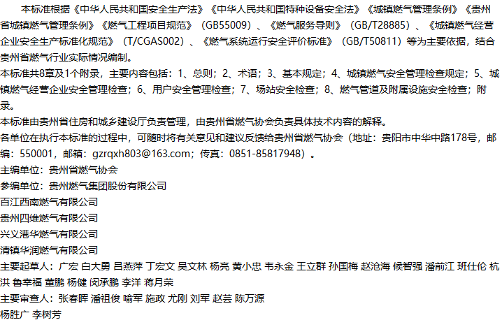 贵州省城镇燃气安全检查标准收藏