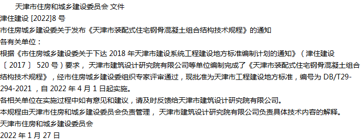 天津市装配式住宅钢骨混凝土组合结构技术规程收藏