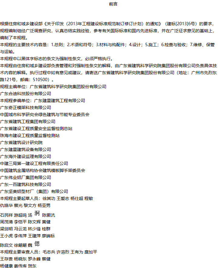 组合铝合金模板工程技术规程收藏