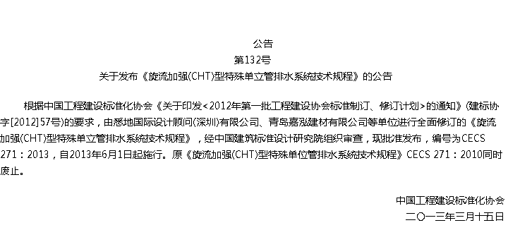 旋流加强(CHT)型特殊单立管排水系统技术规程收藏