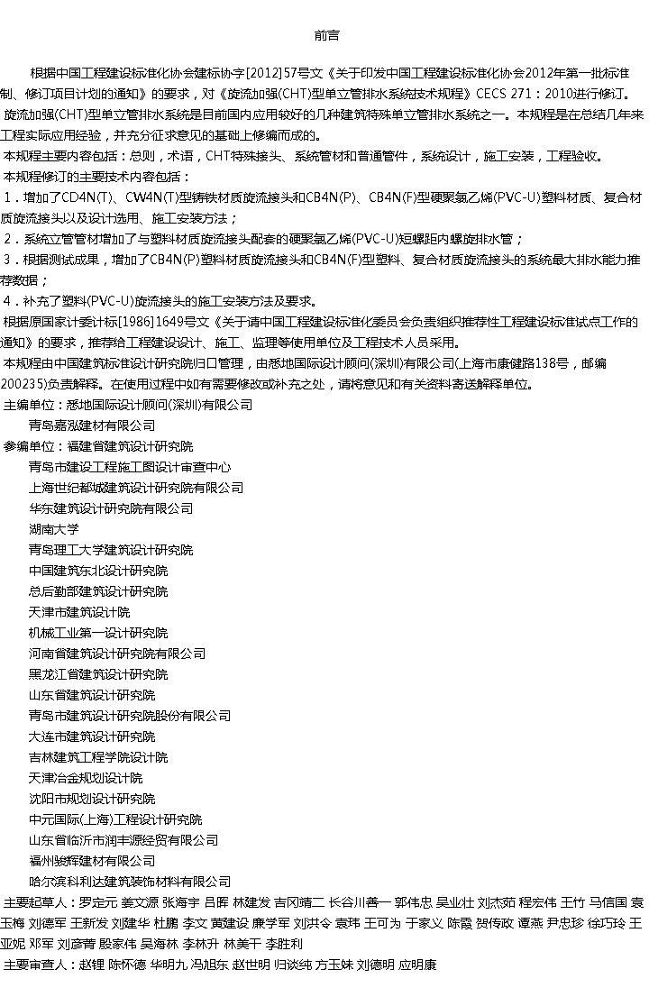 当前位置:首页 > 标准规范 > 旋流加强(CHT)型特殊单立管排水系统技术规程 <返回