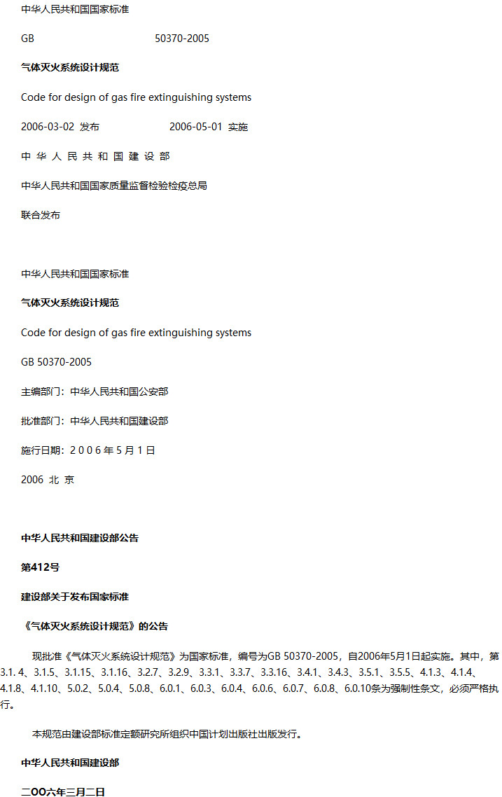 气体灭火系统设计规范收藏