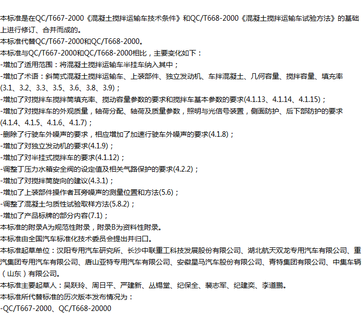 混凝土搅拌运输车技术条件和试验方法收藏