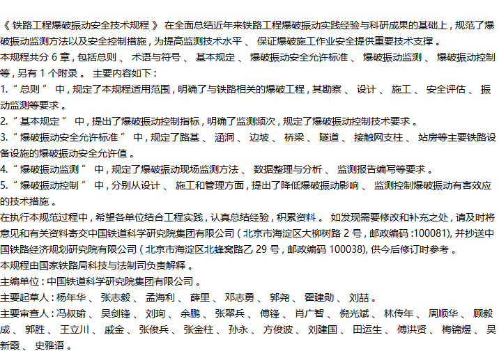 铁路工程爆破振动安全技术规程收藏