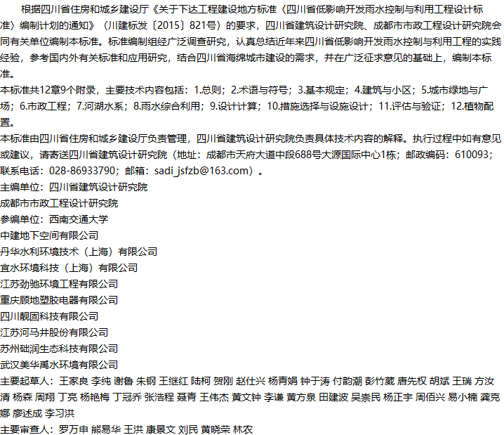四川省低影响开发雨水控制与利用工程设计标准收藏