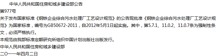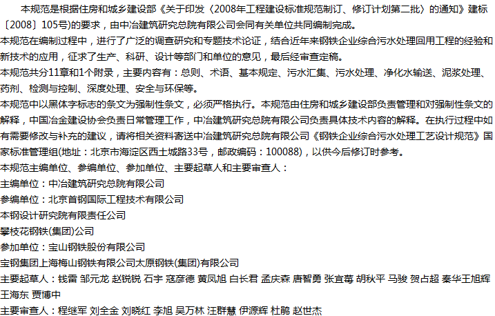 钢铁企业综合污水处理厂工艺设计规范收藏