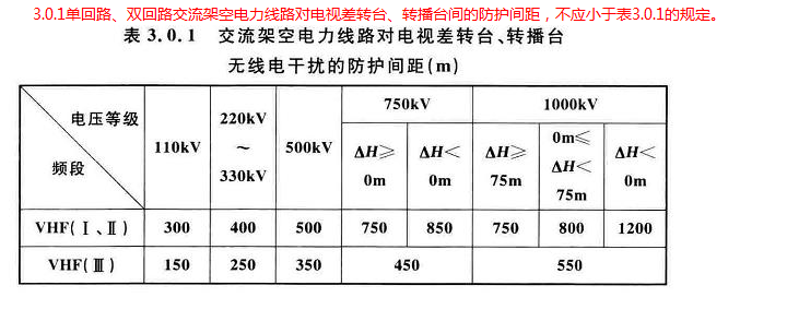 架空电力线路、变电站(所)对电视差转台、转播台无线电干扰防护间距标准